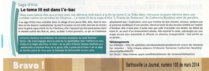 Le journal de Sartrouville, numéro 100 de mars 2014 annonce la sortie de L'Oracle de Tennesse en page 8.